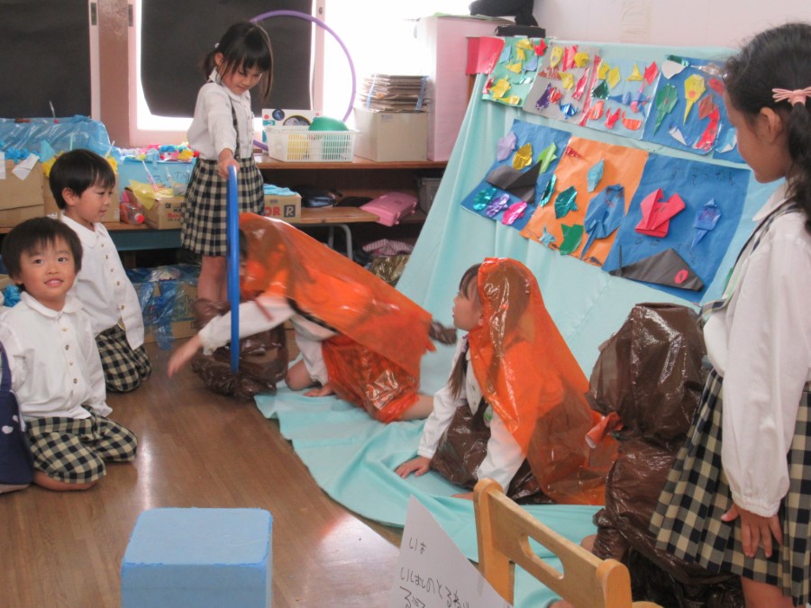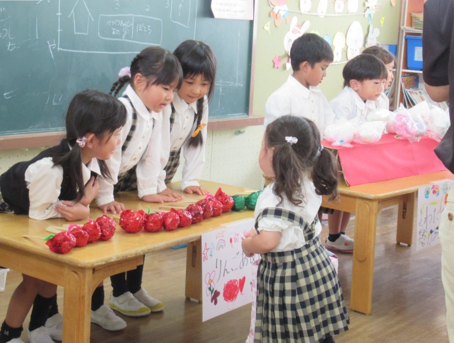 園児で話し合い、「おきゃくさん」を招くにはどんな店にしたいか考えます。